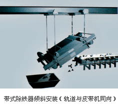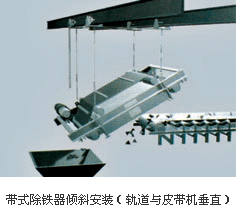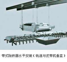 輸料大皮帶除了上下山段之外,多為水平運行,在大皮帶任意水平段上方均可按水平式吊裝除鐵器